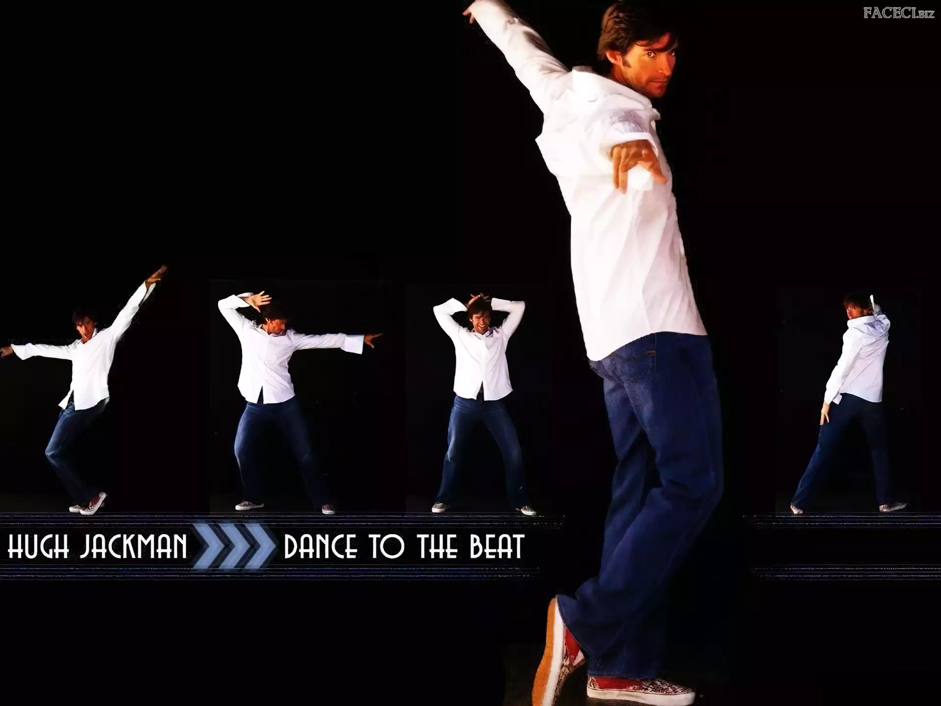 jeansy, Hugh Jackman, biała koszula